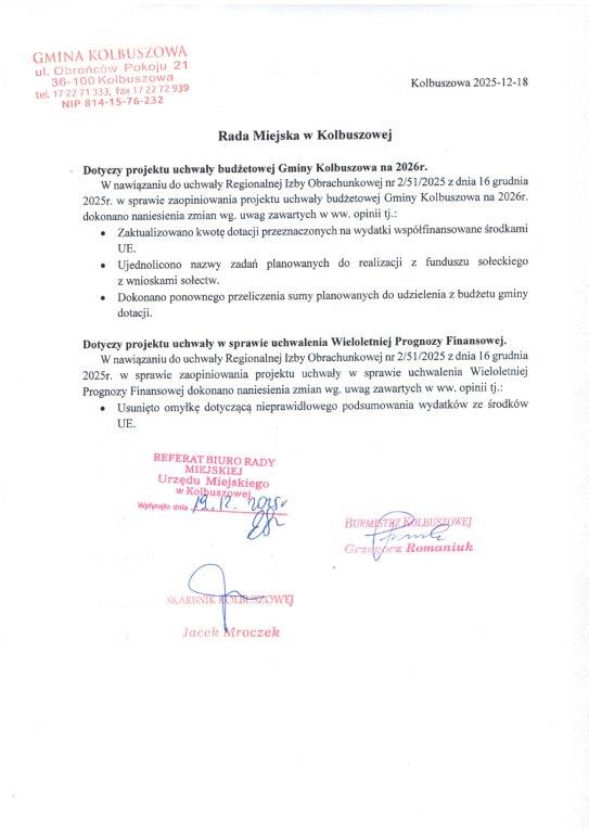 Podjęcie uchwały w sprawie uchwalenia budżetu Miasta i Gminy Kolbuszowa na 2026 rok.