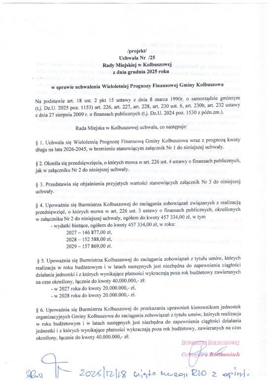 Podjęcie uchwały w sprawie Wieloletniej Prognozy Finansowej Gminy Kolbuszowa.